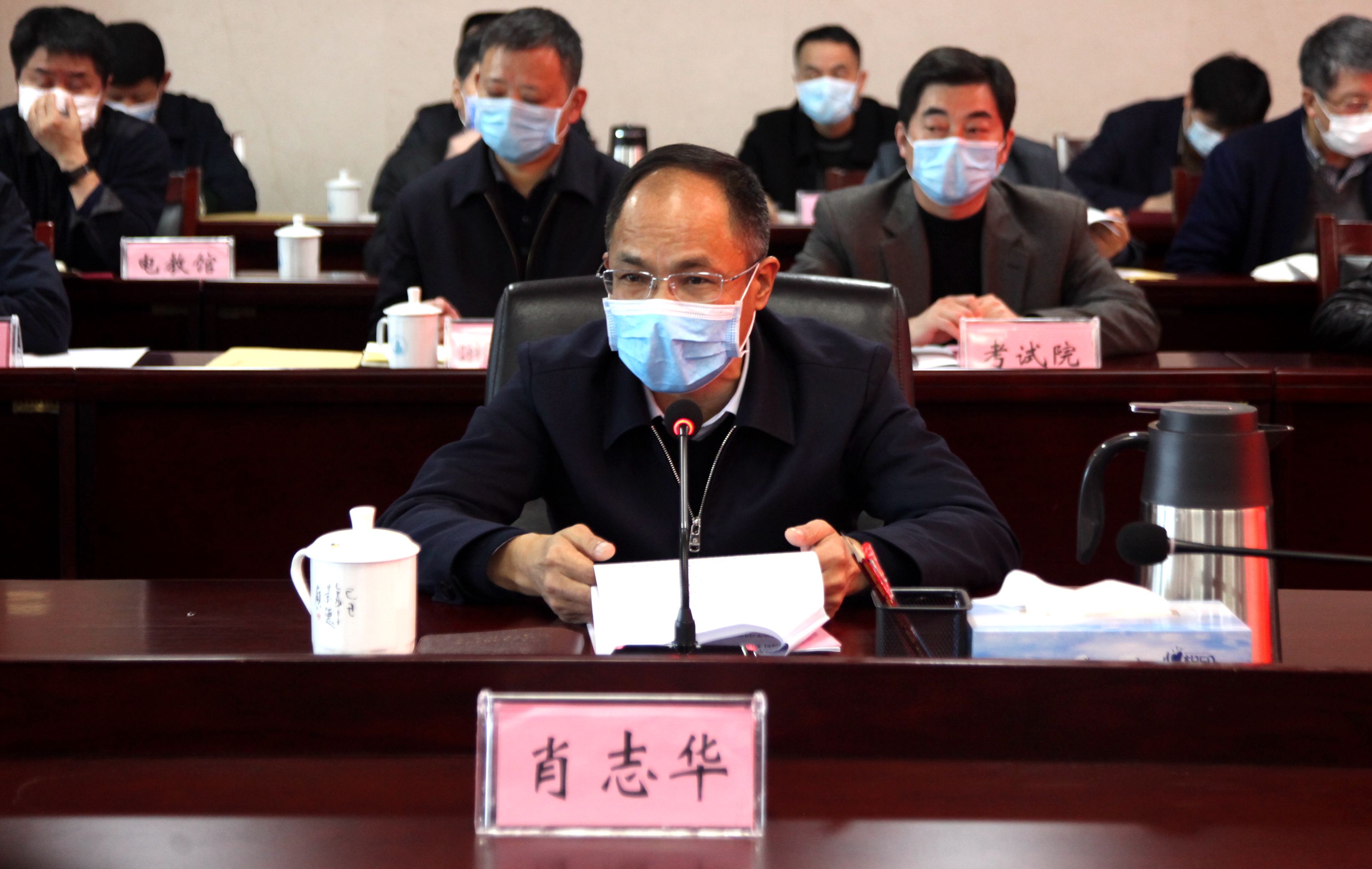 3月19日,省委教育工委书记、省教育厅厅长叶仁荪主持召开2020年工委中心组第三次学习(扩大)会,传达学习3月18日召开的中共中央政治局常务委员会会议精神、3月4日召开的中共中央政治局常务委员会会议精神和省委常委会要求;习近平总书记考察湖北重要讲话精神和省委常委会要求;习近平在决战决胜脱贫攻坚座谈会上的重要讲话精神和省委常委会要求;习近平给在首钢医院实习的西藏大学医学院学生的回信精神和教育部要求;习近平给北京大学援鄂医疗队全体“90后”党员的回信精神。省委教育工委副书记肖志华传达学习干部个人事项填报相关精神。