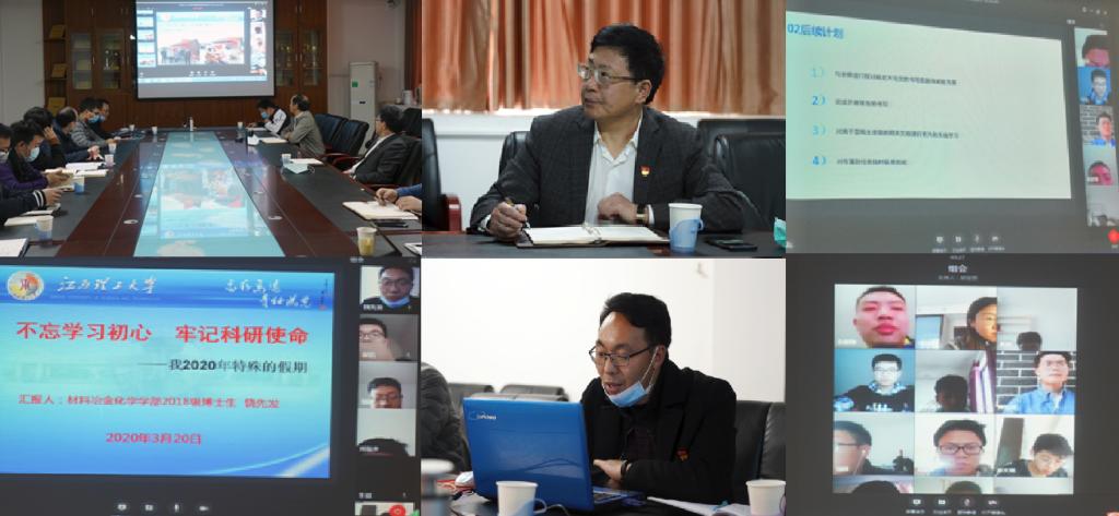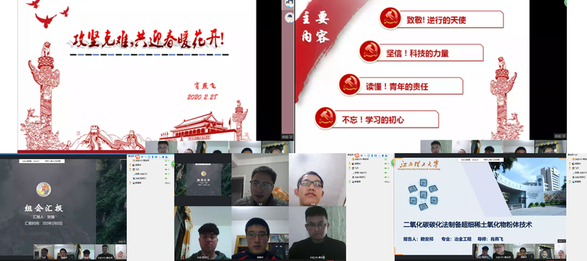 材料冶金化学学部负责稀土领域国家重点研发计划子课题的研究生导师肖燕飞不但定期召开“云组会”,还通过以“攻坚克难,共迎春暖花开”为主题的“思政云课堂”,加强研究生思想政治教育,积极做好对研究生的人文关怀和心理疏导,提醒研究生积极配合疫情防控,倡导健康生活方式。研究生导师肖燕飞:“做好研究生成长成才的指导者和引路人是导师的第一责任。疫情防控期间,我们不能像最美逆行者一样奋战在抗疫一线,只能以自己的方式,减少疫情对研究生培养的影响。通过‘云组会’,创新研究生指导方式,虽然没有正式开学,但研究生的学习任务也不少,团队5名研究生均积极参与稀土领域国家级科研项目,共发表高水平论文12篇,近期投稿2篇。”