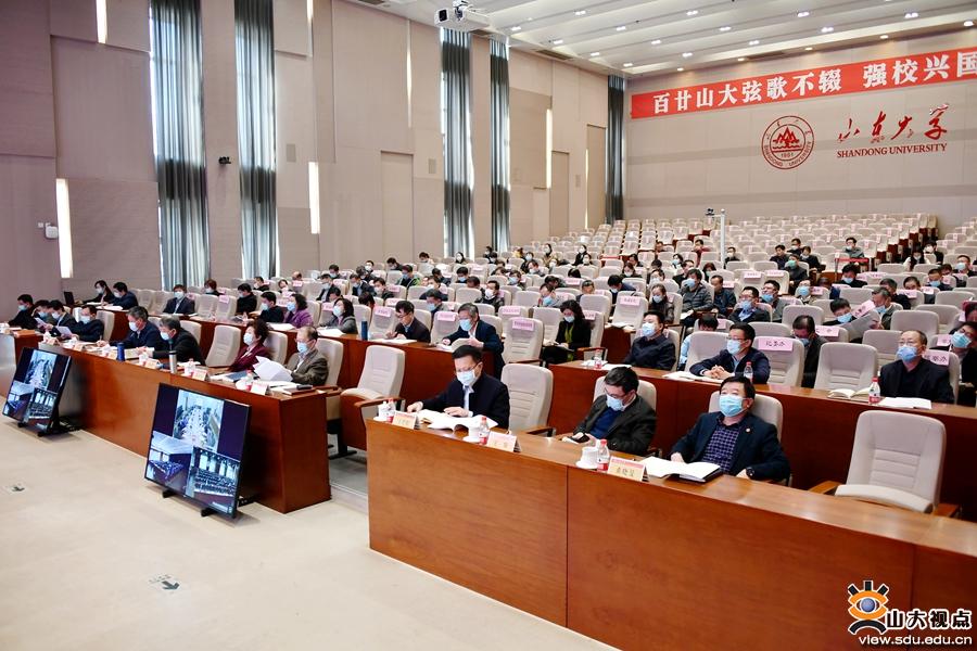 会议采取“主会场+视频分会场”方式召开,中心校区设立主会场,威海校区、青岛校区、齐鲁医学院设立视频分会场。全体校领导、各职能部门主要负责人、教学科研机构、附属单位党政主要负责人参加会议。