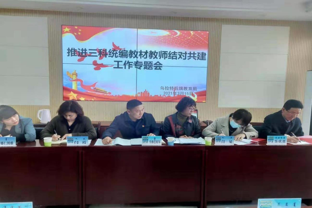 “结对共建”制度是我区推行国家“三科”统编教材工作的重要措施之一,主要是通过优质普通学校与民族语言授课学校组建“结对共同体”、互派教师、共同教研、名师带徒、“就近走教”、“一对一”包联指导等多种方式,切实帮助民族语言授课学校三科教师提高使用国家通用语言文字教育教学能力水平。自今年1月教育厅等四部门印发的《2021年民族语言授课学校推行使用国家统编教材师资保障工作实施方案》颁布后,各盟市、旗县(市、区)教育行政部门积极响应、统筹规划,制定具体“结对共建”工作方案,明确结对学校、共建方式、任务目标,春季学期全面推进“结对共建”工作。