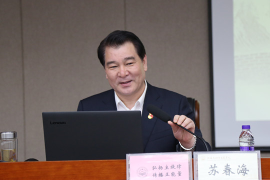 苏春海以《做好统战工作促进教育发展》为题,系统阐述了党的统一战线基本理论方针政策,全面总结了全省教育系统统战工作取得的主要成绩和存在问题,深刻分析了做好教育系统统战工作的重要意义,对当前全省教育系统统战工作重点任务进行部署。他指出,当前和今后一段时期,各地各高校要认真学习贯彻《中国共产党统一战线工作条例》,在强化思想政治引领、加强代表人士队伍建设、发挥统战成员作用、做好民族宗教工作、深化对口联系、开展理论研究等方面下功夫、求突破、见实效。他强调,统战工作政治性、政策性强,教育系统统战干部要加强自身建设,不断提高工作能力水平,以统战工作的实际成效助力全省教育高质量发展,以优异的成绩迎接中国共产党百年华诞。