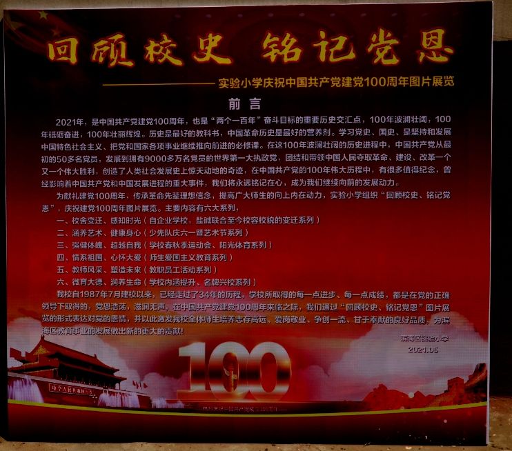 “在中国共产党建党100周年来临之际,学校通过“回顾校史、铭记党恩”图片展览的形式,来表达全体师生对党的恩情,并以此为动力,培养我校教师志存高远、爱岗敬业、争创一流、甘于奉献的良好品质,为滨海区教育事业的发展做出新的更大的贡献。”滨海实验小学校长张艳玲如此说。
