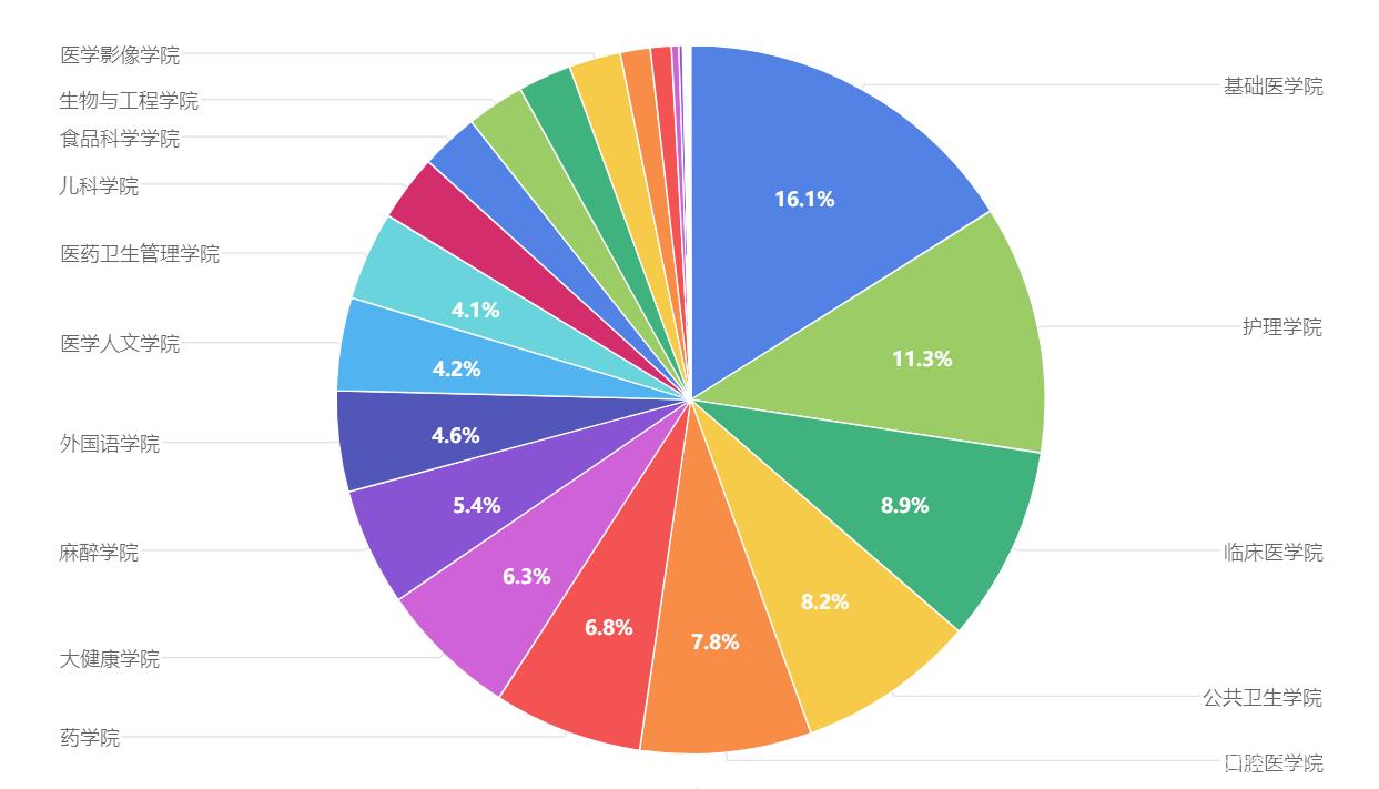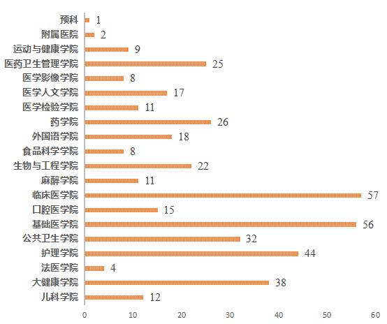 在对学生学习信息的统计分析中发现,我校有416名在校生不具有线上学习的硬件或软件条件,占在校生总人数的1.98%,分布于各个学院,其中基础医学院(56人)和临床医学院(57人)的人数较多(图15)。虽然这部分学生所占比重不大,但应引起学校和各学院的关注,并积极协助其解决线上学习困难,使其不停学,不掉队。
