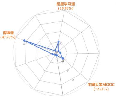 学校前期搭建了雨课堂、学习通和THEOL网络教学综合管理平台,并组织在线培训,让老师们掌握平台使用方法,同时鼓励教师们根据课程教学的需要,自主选择合适的教学资源。授课教师共采用包括雨课堂、超星学习通、智慧树、中国大学MOOC、学堂在线、人卫慕课、THEOL网络教学综合平台等多个平台(具体分布如图4、图5)。从数据分析上看,教师们最常用的教学平台是雨课堂(47.70%),其次是超星学习通(15.50%)和中国大学MOOC(12.20%)。