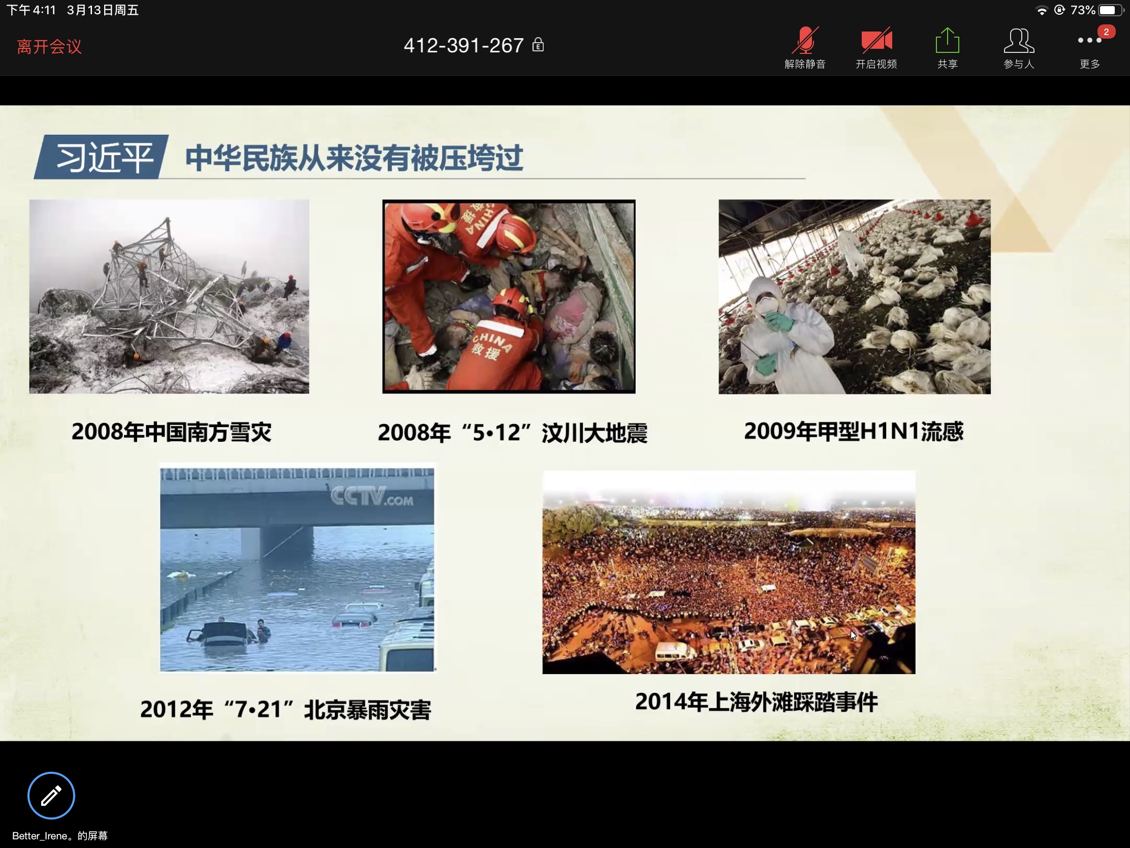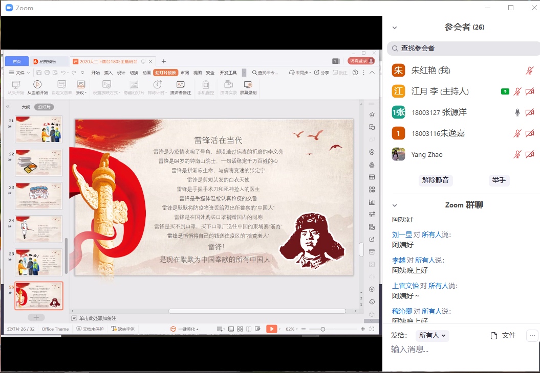会计学院国会1805班的“云班会”现场则有一位特殊导师参与,她就是张源洋同学的母亲杨女士。杨女士是学院聘请的“家长导师”,作为松江区一所医院的党委书记,她在“云班会”上给同学们介绍了上海市和松江区的疫情防控情况,从医学专业角度让同学们加深了对新冠肺炎疫情的认识,进一步掌握了疫情防护的知识,更让同学们体会到了战“疫”一线医务工作者们的艰辛和不易,对他们深感敬意。