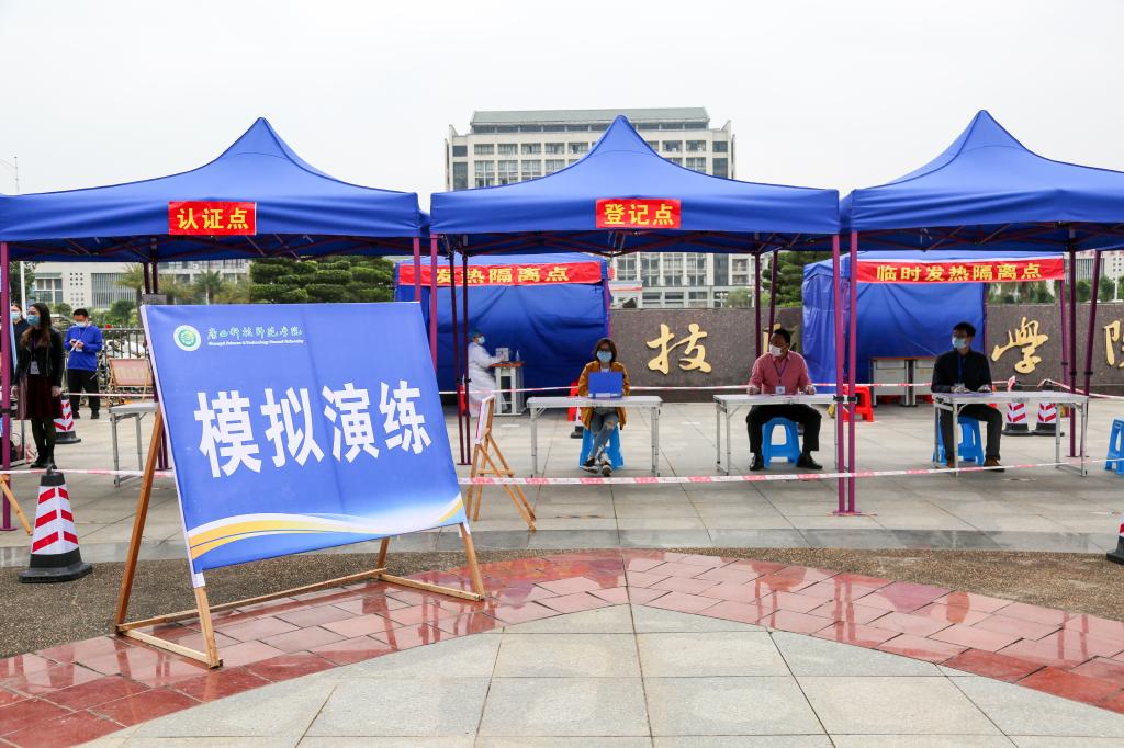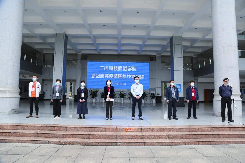 4月16日、17日,学校先后在来宾校区、柳州校区开展新冠肺炎疫情防控应急演练。学校领导陈贵英、张鹏、吴江萍、陈翔、蓝海、梁梅、李栋学、胡国强,校长助理、柳州校区管委会主任宋启军,学校开学工作领导小组各工作组及各有关部门负责人、二级学院党政负责人及辅导员参加演练。校党委书记陈贵英、校长张鹏担任此次演练总指挥,校党委副书记陈翔担任现场指挥。