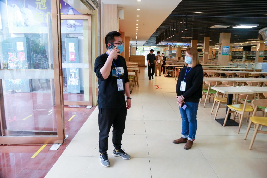 同时演练的还有食堂工作人员出现发烧症状的应急处置、环境消杀防疫等。