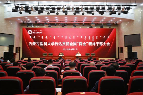 6月2日下午,内蒙古医科大学召开干部大会,传达贯彻全国“两会”精神。校党委书记乌兰主持会议。