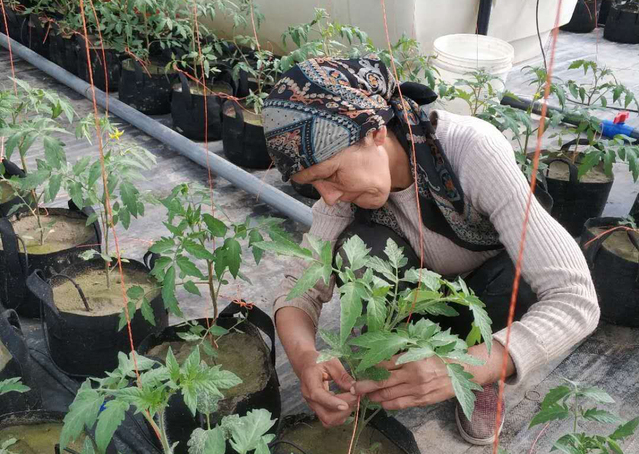 今年,该项技术作为石河子大学科技特派服务项目,对第三师四十四团原种连两个废旧大棚进行升级改造,加以利用。王登伟带领科技特派团队去了以后,在荒废的大棚地上铺上防草布,然后整齐地摆上种植袋,安装全自动水肥一体化系统。现在,番茄苗长势喜人,周围的村民和职工经常来大棚里打工,不仅学到了先进的种植技术,还增加了收入。这让当地的很多老百姓对温室大棚种植模式有了重新的认识。