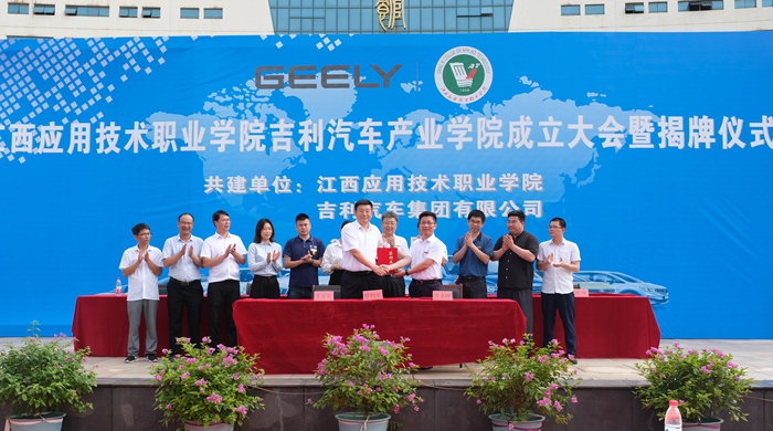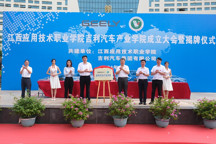 江西应用技术职业学校在中国共产党建党100周年即将到来之际,江西应用技术职业学校校企合作再谱新篇献礼百年华诞。6月29日上午,吉利汽车产业学院成立大会暨揭牌仪式在江西应用技术职业学校隆重举行。学校党委书记张家菁、吉利汽车集团杭州湾公司副总经理丁云长分别在大会上致辞。徐志峰校长、丁云长副总经理代表校企双方签署了产业学院共建协议。
