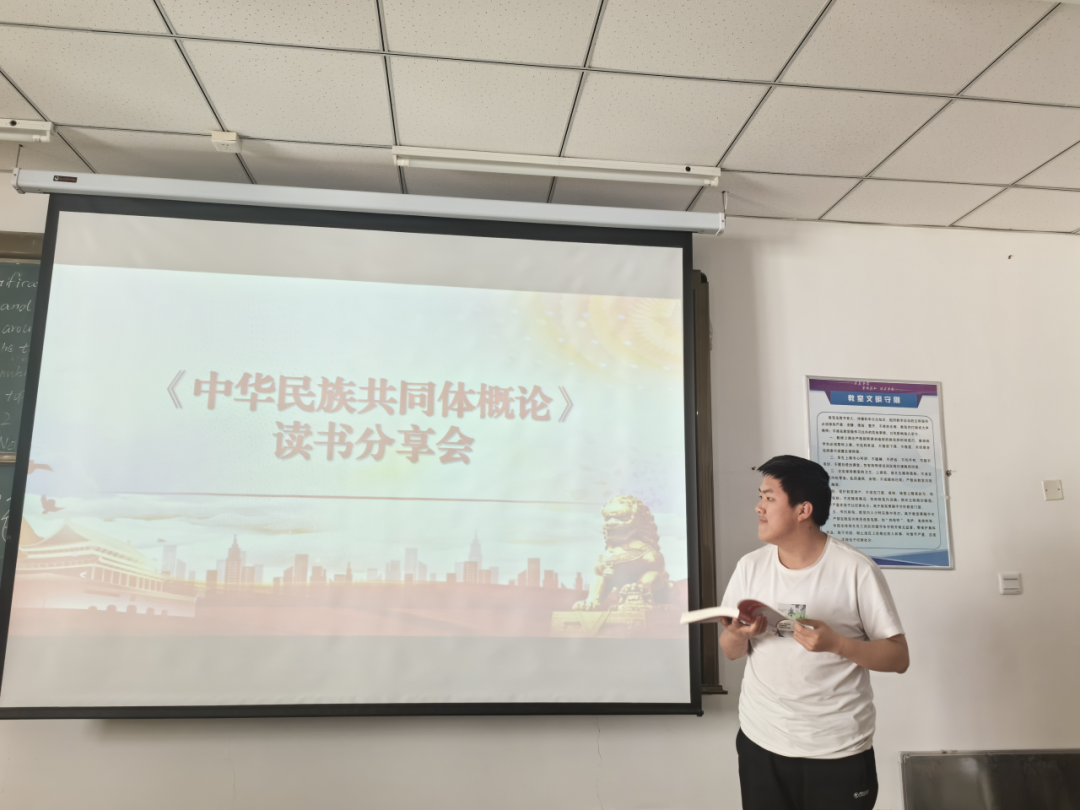 为全面贯彻落实习近平总书记关于加强和改进民族工作重要思想,以铸牢中华民族共同体意识为主线,充分利用思政课堂,扎实推进民族团结进步教育。5月30日,思政教研部铸牢中华民族共同体意识课堂举办“《中华民族共同体概论》读书分享会”。同学们在老师的引导下,纷纷走上讲台,分享了自己读书的心得体会以及对中华民族共同体形成的深刻认识。 思政教研部铸牢中华民族共同体意识教研室主任马向群主持此次分享会 同学们纷纷表示,此次读书分享会收获颇丰,让人深受启发,《中华民族共同体概论》教材立意高远,从中华民族整体视角出发,紧扣各民族交往交流交融的历史主轴,向我们呈现出了中华民族在政治、经济、社会、文化等方面的共同性不断增强的历史过程,对于同学们树立正确的中华民族历史观,充分理解中华民族多元一体格局具有深刻的启发作用。 此次读书分享会,是我校民族政策宣传月和民族法治宣传周系列活动之一,对于同学们深刻把握统一多民族国家的基本国情,深刻理解中华民族从哪来,到哪去的历史之问,深刻领会中华民族从自在到自觉的心路历程提供了理论支撑,从而不断夯实同学们心中民族团结的坚定信念,为中华民族伟大复兴提供强大精神动力。